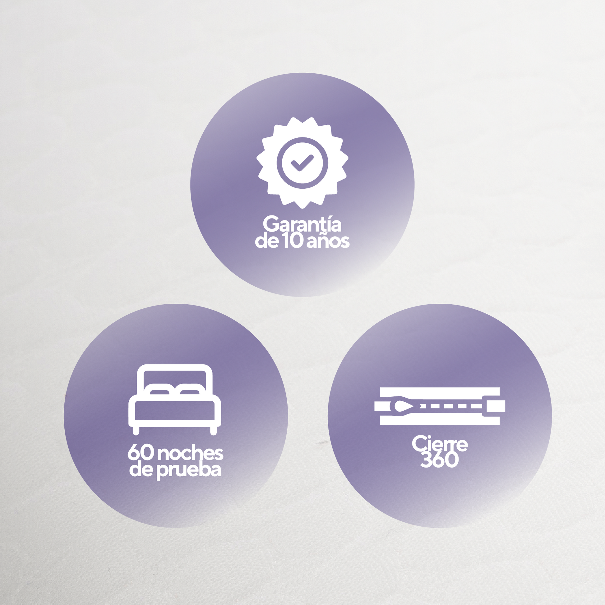 Lo describimos como un colchón de sensación premium y confortable, pensado para quienes buscan lo mejor del descanso. Su equilibrio entre soporte y suavidad genera una experiencia envolvente, como si el colchón se adaptara a cada parte de tu cuerpo sin perder estabilidad. Es la opción ideal si quieres dormir con la comodidad de un hotel 5 estrellas, todas las noches en tu casa.